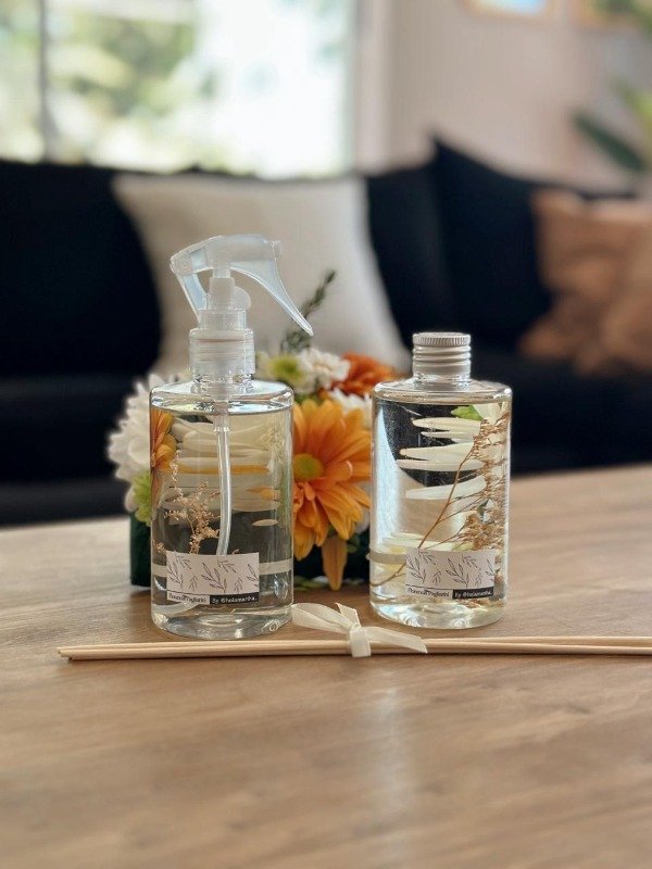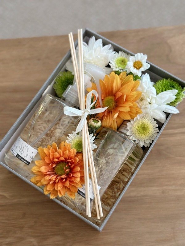 Esta box combina la suavidad del difusor y el home spray con la belleza natural de las flores frescas que la acompañan.